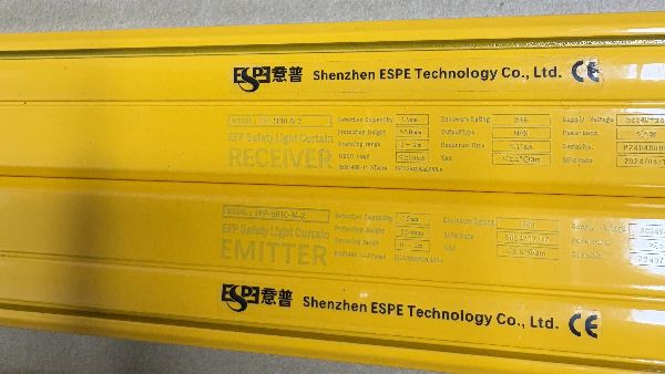 安全光栅实物识别技巧(以意普ESPE为例)记忆口诀:"E射R收" → E=发射(Emitter),R=接收(Receiver)。判断方法:发射器(E)| 接收器(R);指示灯:常亮绿色 | 受光时亮绿色;接线端子:标有"E"或"TX" | 标有"R"或"RX";光学窗口:可见红色激光发射点 | 无可见光点。